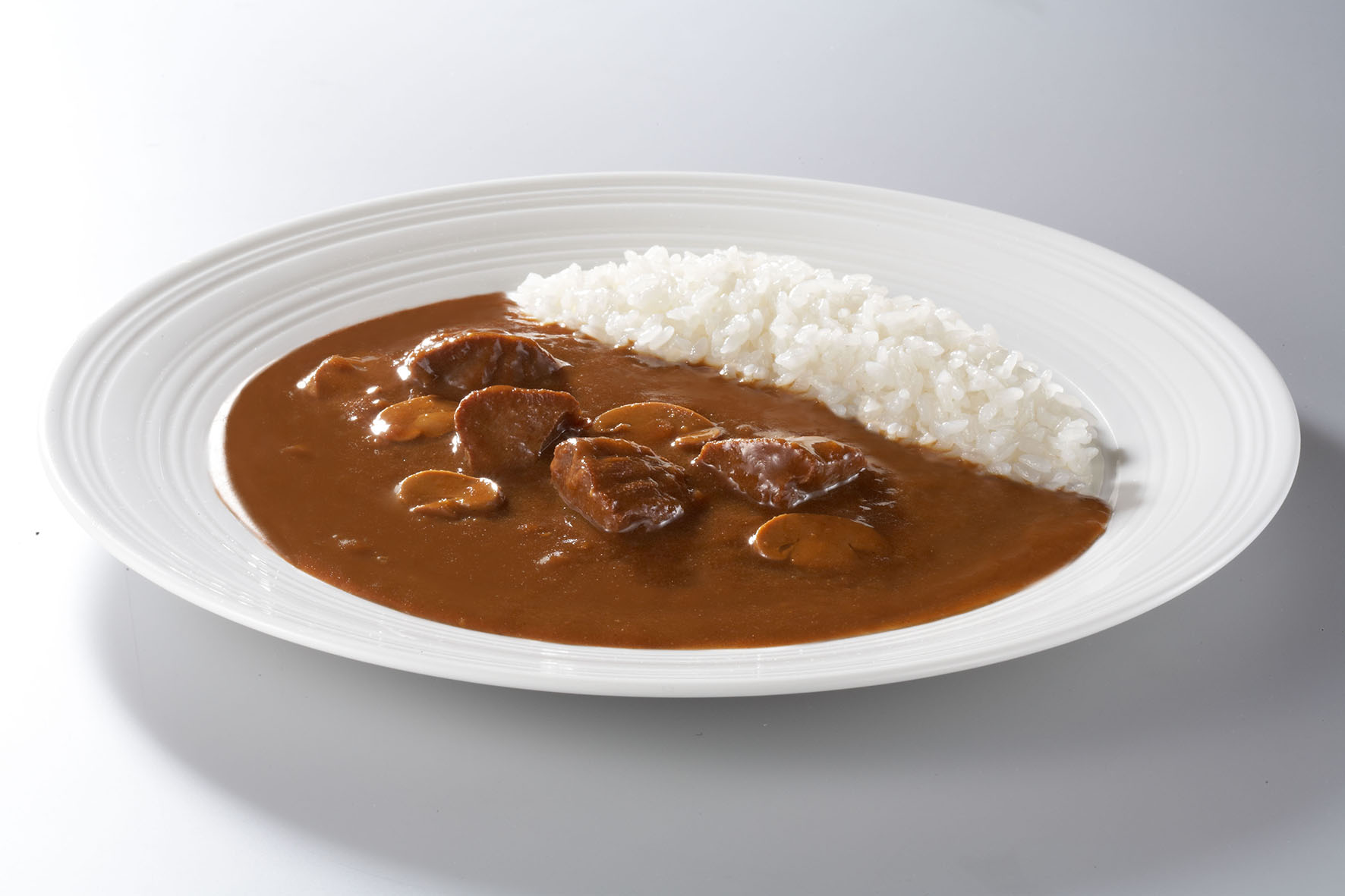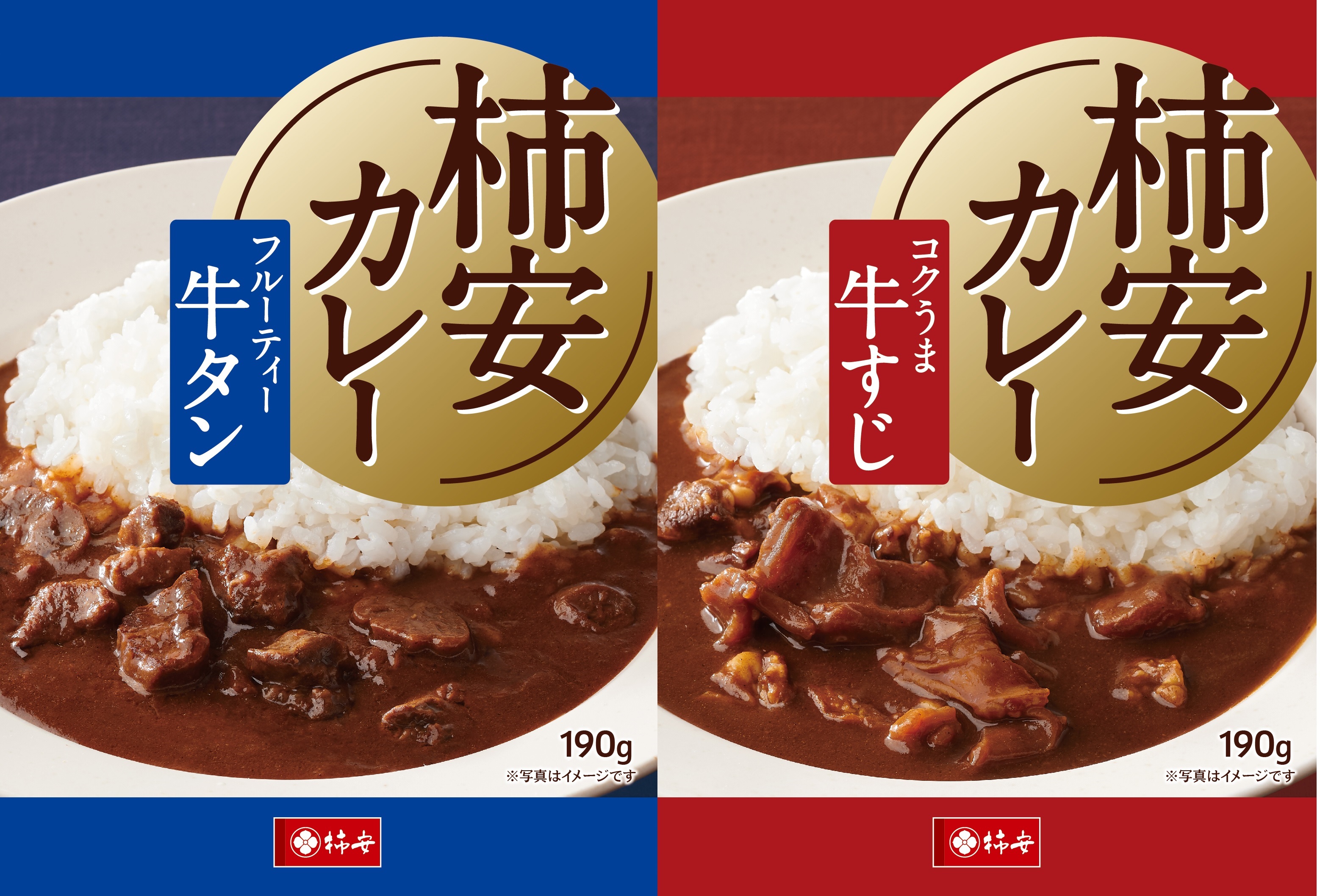 創業明治4年 肉の老舗「柿安」が作り上げたカレーです。柔らかく煮込んだ牛すじに、焙煎したカレーパウダーの香りと生クリームのまろやかさを合わせた、コクと旨みのある牛すじカレーと、スパイスを効かせたカレーソースに玉ねぎのコクとりんごなどの甘みを合わせた、コクと旨みのある牛すじカレーと、